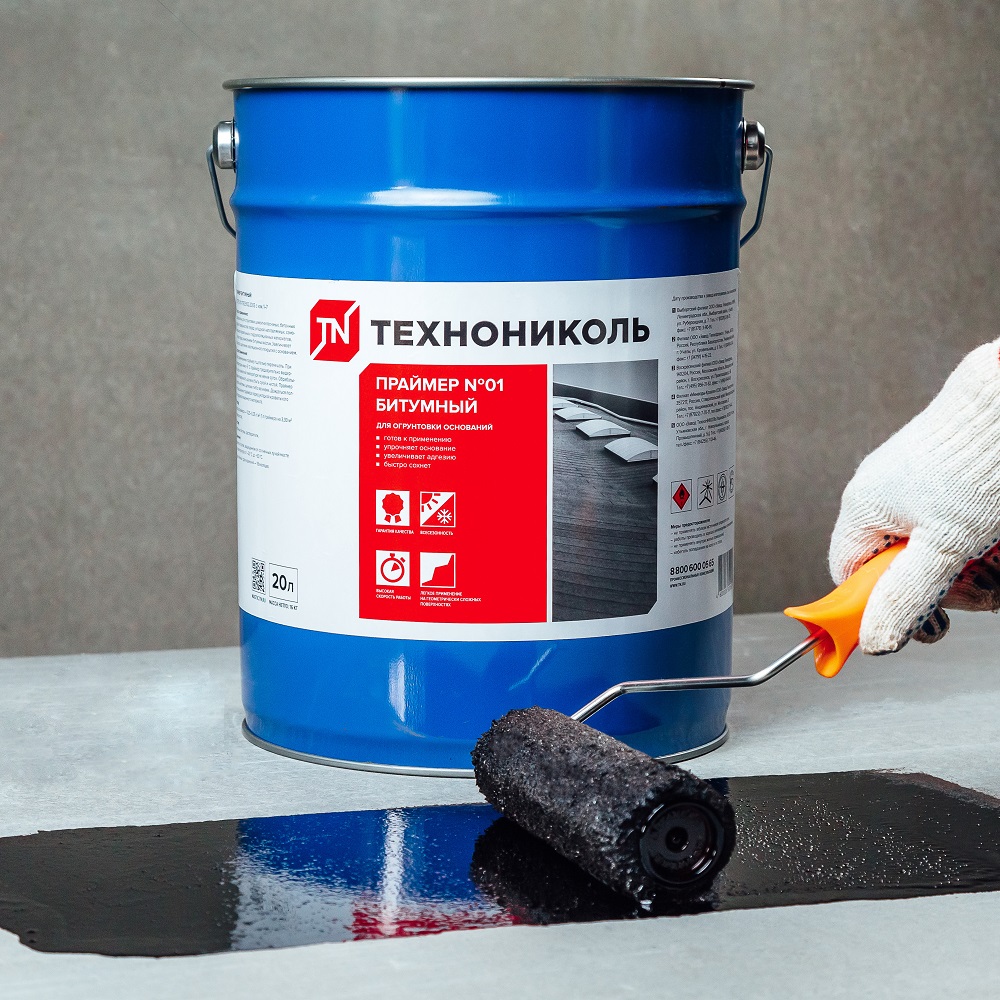 Праймер Технониколь №01 – это готовый к использованию битумный состав, который предназначен для подготовки поверхности перед нанесением гидроизоляционных материалов.
