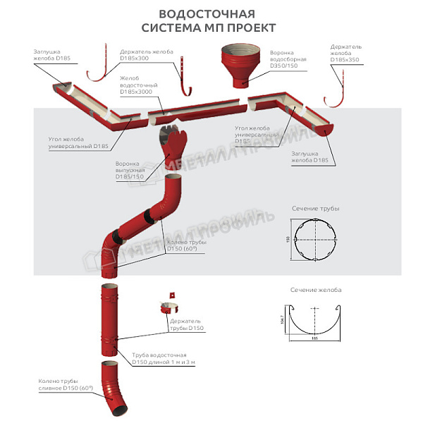 - Сталь в основе не позволяет Труба водосточная МЕТАЛЛ ПРОФИЛЬ ПРОЕКТ D150х3000 Ral 7004 корродировать.